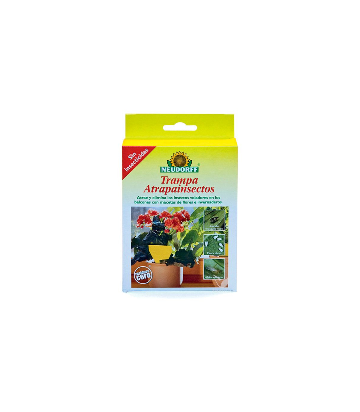 Las trampas adhesivas pueden ser usadas en invernadero y en exterior. Son medios esenciales para detectar plagas de insectos y seguir el desarrollo de sus poblaciones. Además pueden servir para controlar las plagas cuando las usamos en alta densidad (elevado nº de trampas por planta o m²). Las trampas amarillas atrapan mosca blanca, minador, pulgones y mosca esciárida. La forma de aplicar las trampas es siempre por encima de las puntas de las plantas, elevando la trampa a medida que van creciendo las plantas. La excepción es en la mosca esciárida, ya que las trampas se colocan a nivel del suelo. La densidad de trampas a colocar es de 5 por cada 100 m²cuando se usan para detección y seguimiento de plagas. Cuando se utilizan como medio de control, la densidad debe ser de 1 por cada 2 m² y en cultivos de interior debe ser de 1 por m².