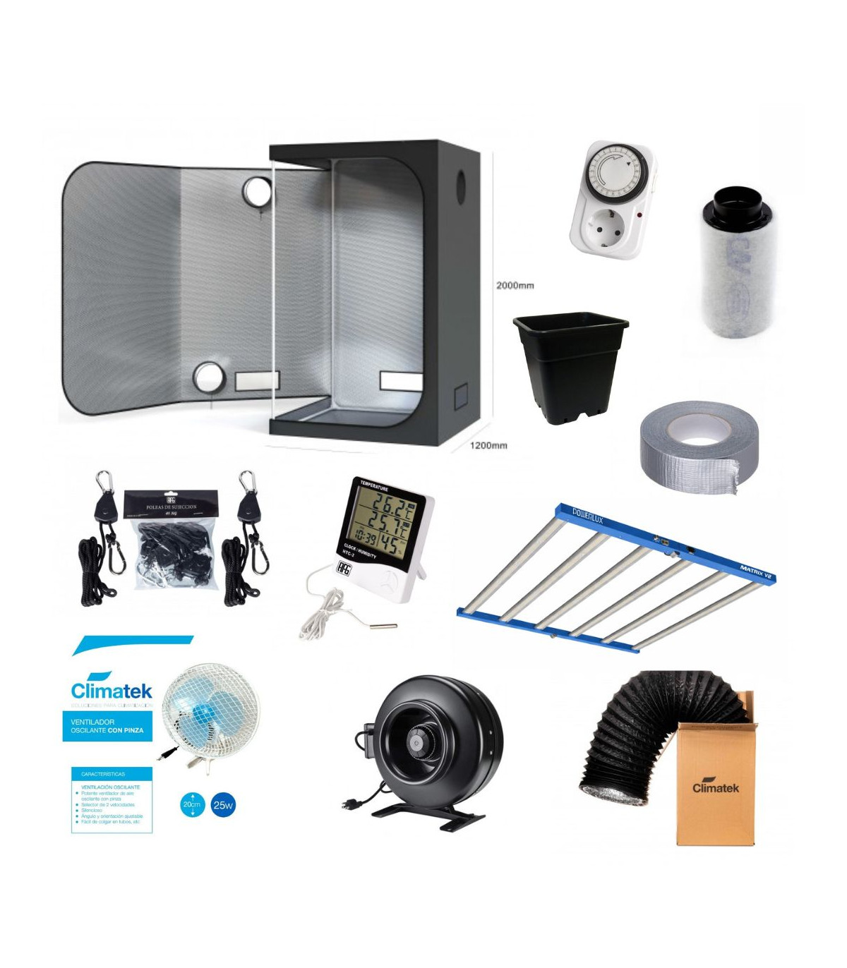 El Invernadero EVO 120 AFG es la opción ideal para cultivadores que buscan un espacio amplio, resistente y eficiente para cultivo interior. Con unas dimensiones de 120x120x200 cm, ofrece el equilibrio perfecto entre superficie de cultivo y aprovechamiento de la luz.