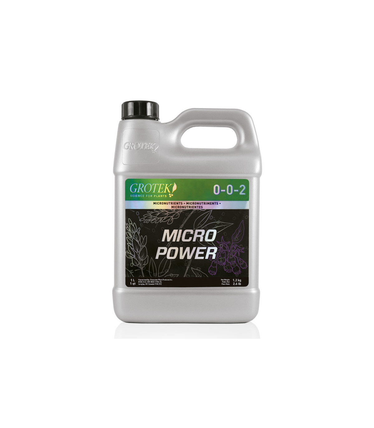 Micro Power de Grotek es un complemento nutricional formulado para proporcionar una mezcla equilibrada de micronutrientes esenciales que muchas veces faltan en cultivos sin suelo o en sistemas hidropónicos. Su composición incluye nitrógeno, potasio, magnesio y azufre, además de oligoelementos como hierro, manganeso, zinc, cobre, boro y molibdeno.